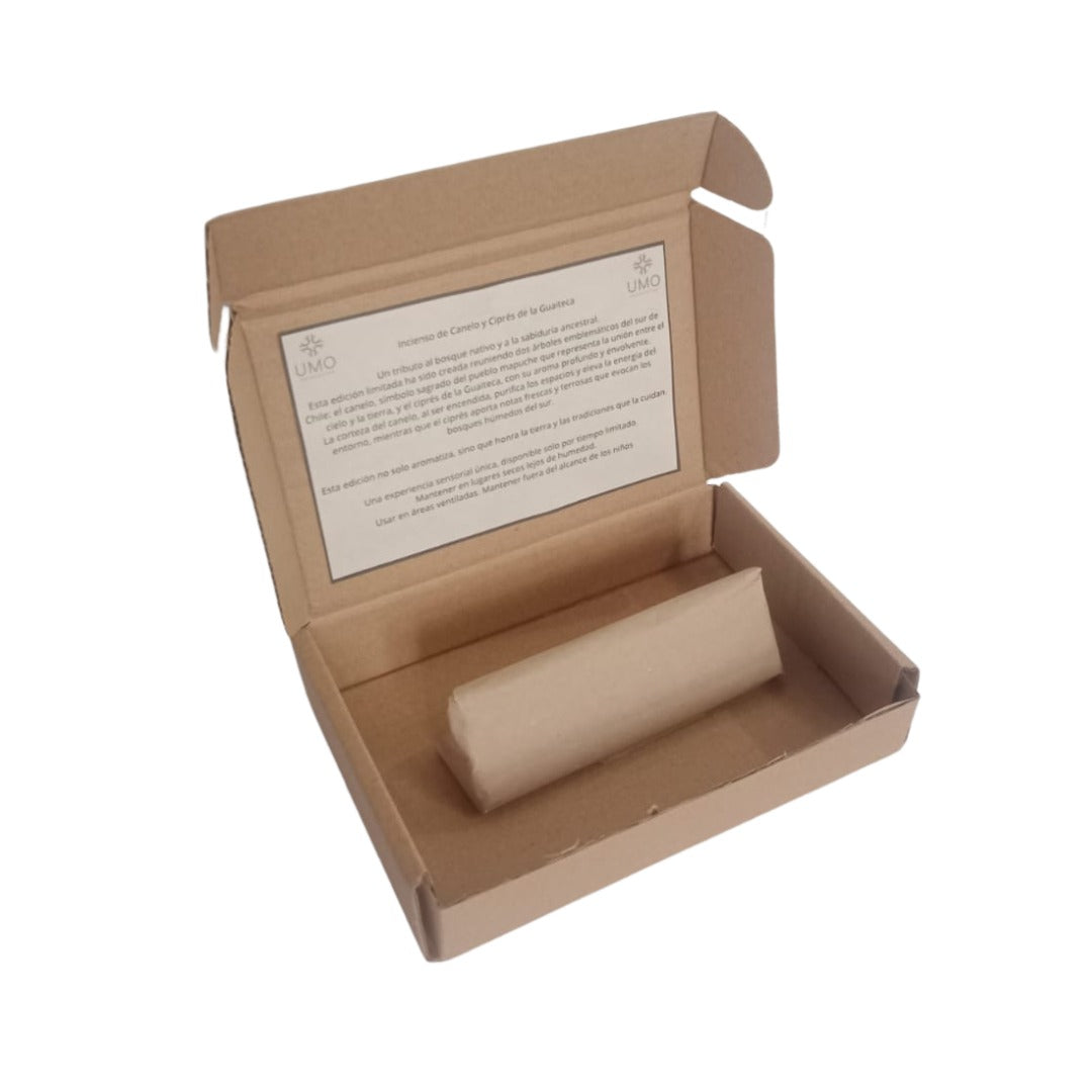 Esta es una creación única de Umo Recolector, nacida de una elaboración artesanal en pequeñas cantidades. Cada varilla de este incienso fue elaborada con corteza de canelo  y Ciprés de las Guaitecas, dos árboles que habitan los bosques lluviosos del sur de Chile.